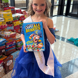 In addition to the pageant competition, contestants and their families took part in a friendly cereal drive benefiting the Greenbrier School District. Cereal is an especially valuable donation for school food pantries because it is kid-friendly, easy to prepare, versatile, and shelf-stable. Donations like these help provide students with a simple, nutritious start to the day, supporting both focus and academic performance. This year, more than 1,200 boxes of cereal were collected and distributed across the district.